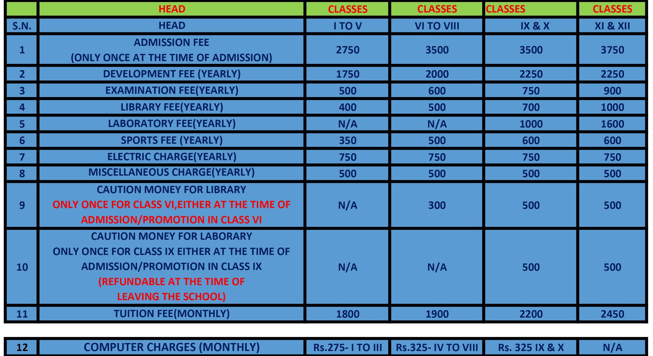 FEE STRUCTURE 2021-2022